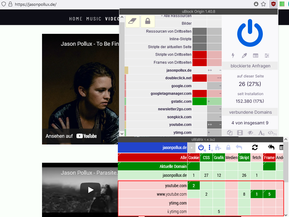 Wie du in uMatrix sehen kannst, gibt es für YT fixe Einstellungen für alle Seiten, die das nutzen wollen, die Matrix ist nicht speziell für hier angepasst.