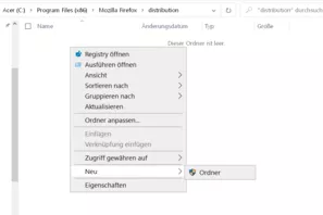 Und zwar im Installationsordner vom Fx den Ordner distribution neu erstellen, und in ihm dann eine policies.json Datei.