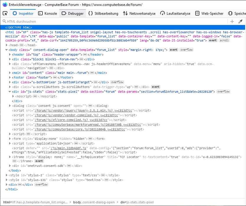Also - diese Einträge werden durch den Cookie-Consent verursacht - bestätigt man den Consent, verschwinden auch diese Elemente. Derzeit benötigt in v96**, die v98 Nightly braucht das nicht mehr, da sind diese Elemente nicht zu finden. Ohne besagtes Script taucht das erst gar nicht auf. Was ich dir sagen kann, dass die Berücksichtigung des z-index unerheblich ist, ich gehe davon aus, dass diese Zahl einfach nur willkürlich ist, um das Element auch ganz sicher im Vordergrund zu halten. Daher final mente