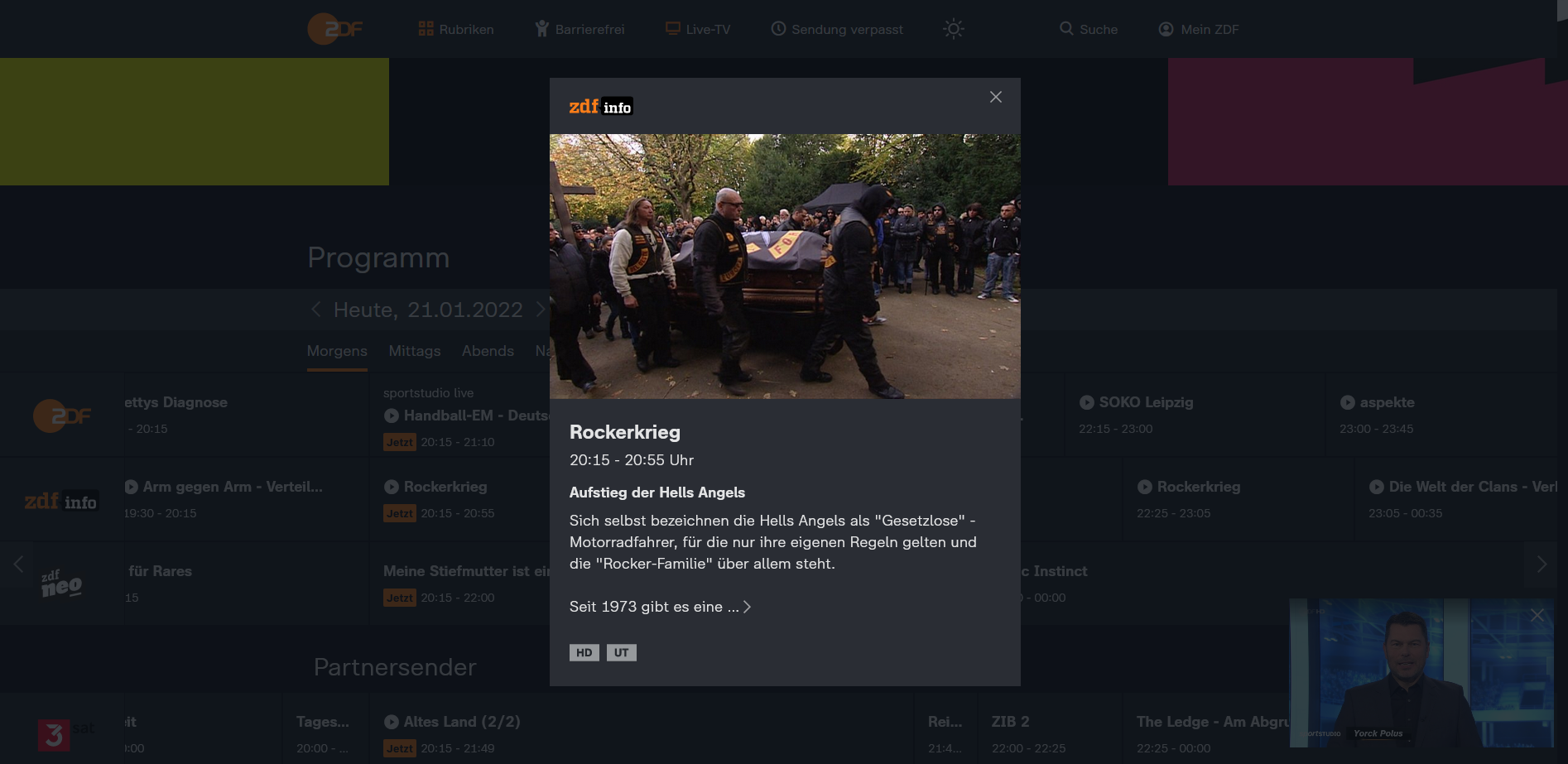 Stelle gerade fest, dass mit dem Code fürs zdf auf https://www.zdf.de/live-tv unter "Programm" bei Klick auf die einzelnen Sendunge nicht mehr aufploppen kann.