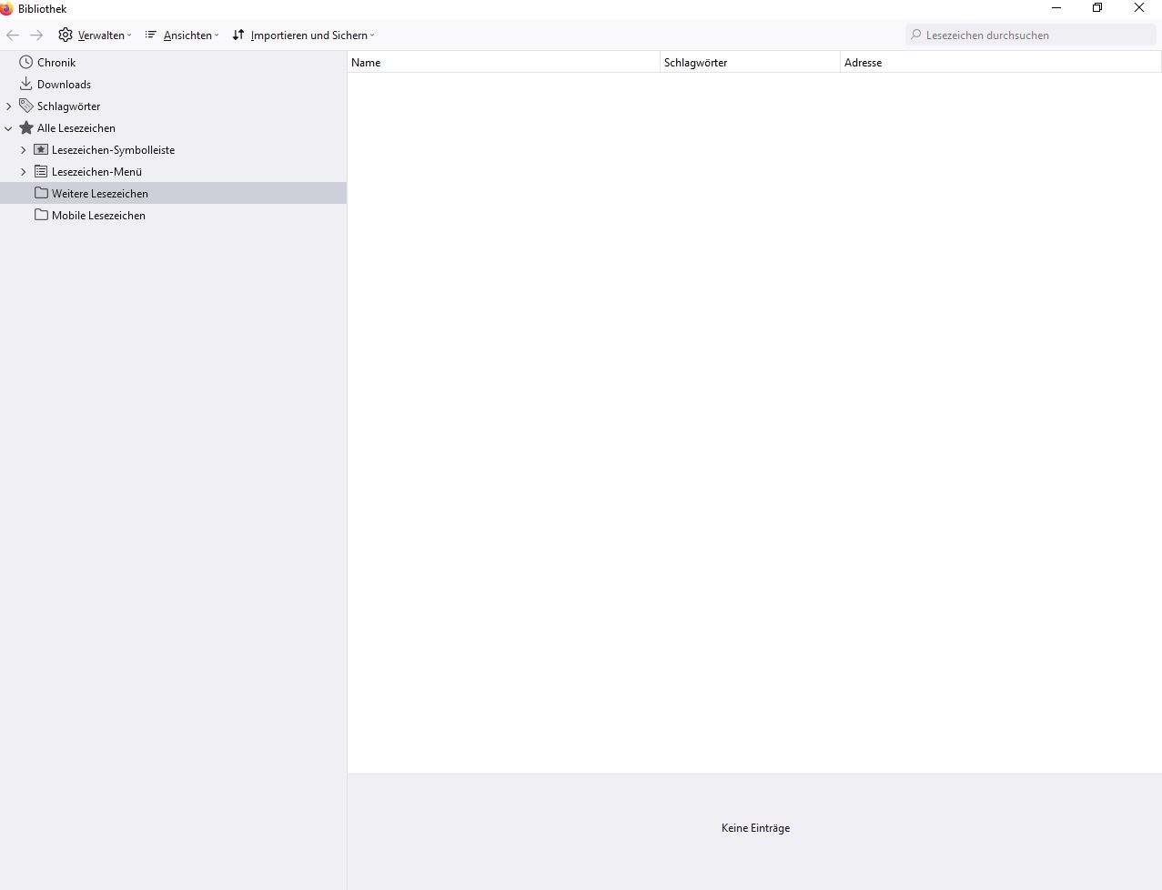Seit Update auf 96.0.1 Lesezeichen -> Verwalten -> leer
