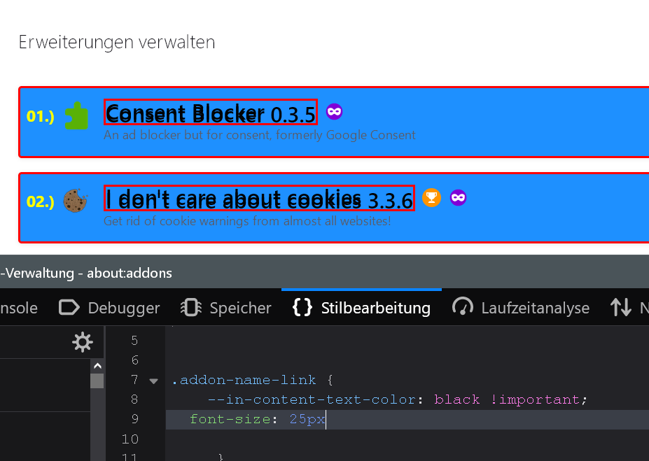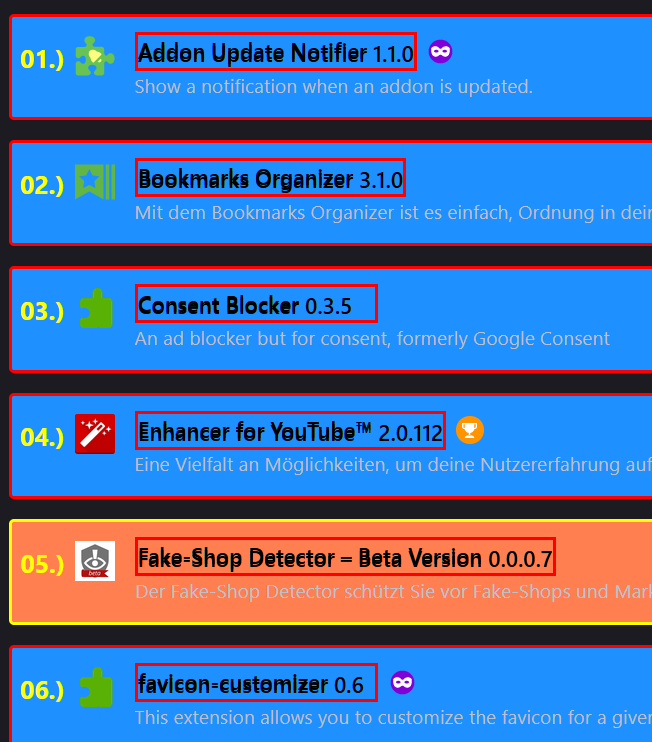 /**** Nummerierung der installierten Erweiterungen im AddonsManager ****/