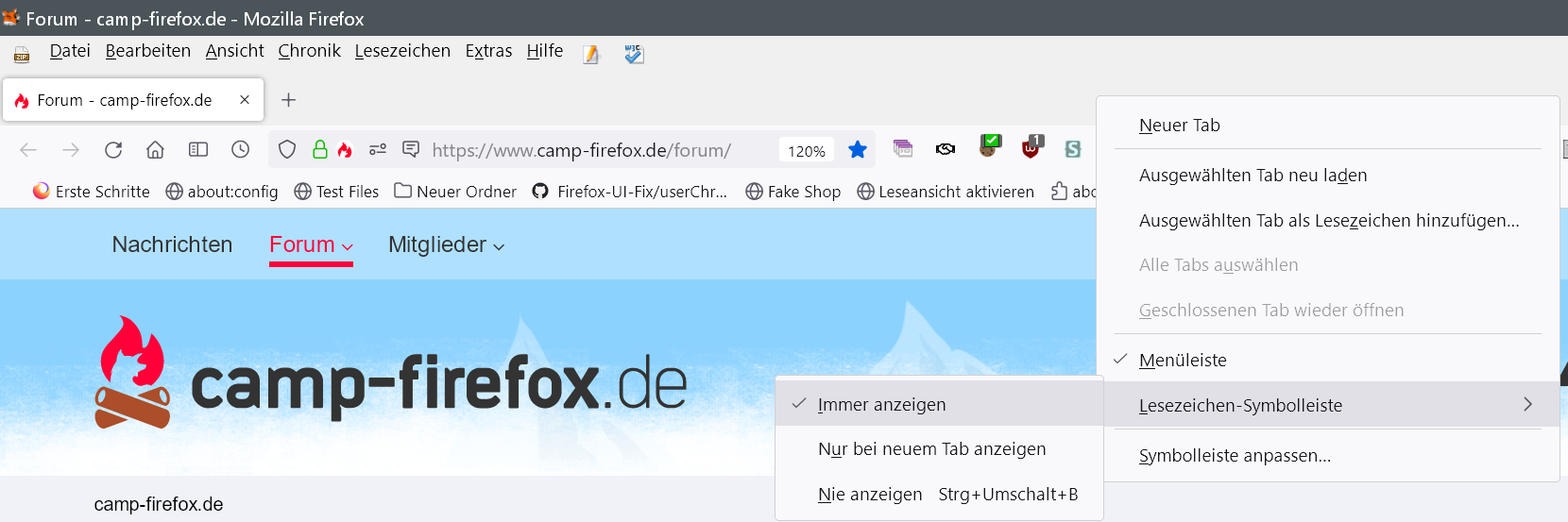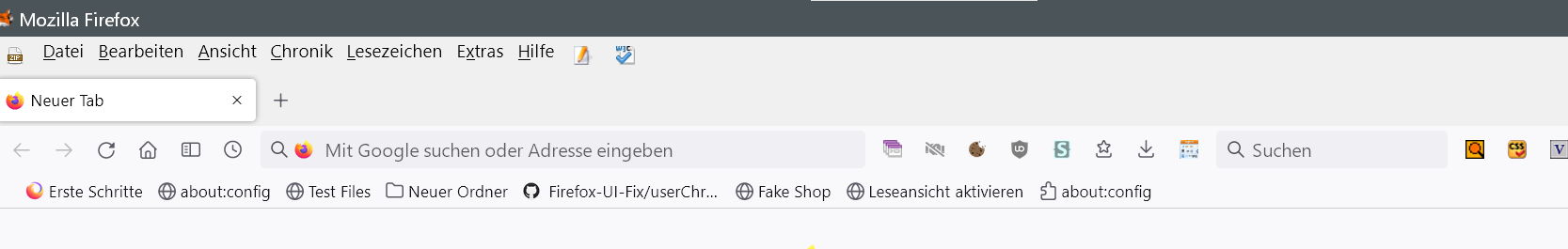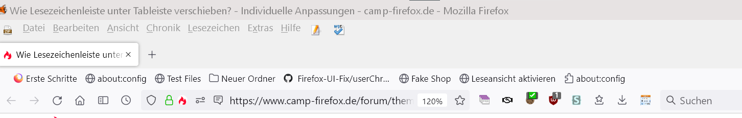 Zum Beispiel möchte ich die Lesezeichen-Symbolleiste unter die Tableiste haben. Über die Suche habe ich leider nichts gefunden. Ich habe mal ein Foto eingefügt, damit man besser versteht, wie ich es meine. Nun hoffe ich, dass es möglich ist zu tauschen.