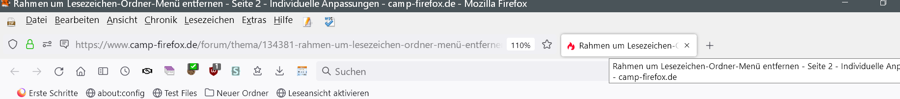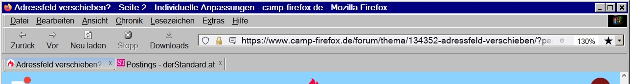 Scheint doch grundsätzlich schon mal zu funktionieren, also es werden bestimmte Elemente (in diesem Fall der Firefox-Anwendungsmenü-Button) in die untere Reihe verschoben.