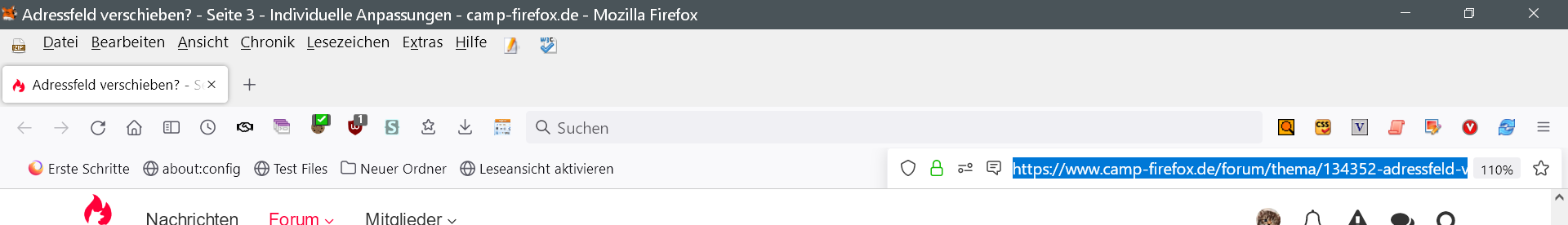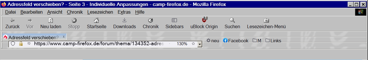 Aber so richtig gut ist das leider noch immer nicht, einmal ist das Adressfeld da, beim nächsten Firefox-Start ist sie nicht mehr da, dann ist sie wieder da, dann wieder, dann wieder nicht.