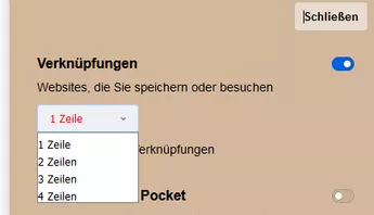 Neuer Tab Einstellungen-Fenster