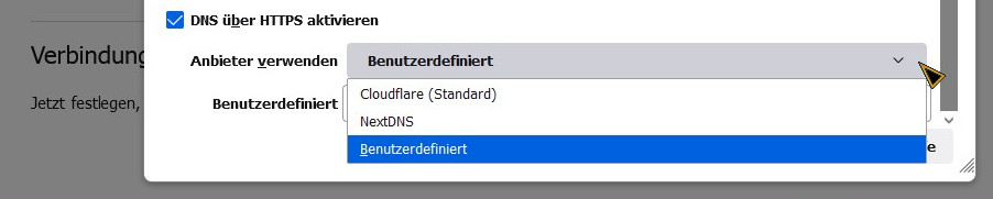 Firefox ignoriert DNS over HTTPS bei benutzerdefiniertem Server