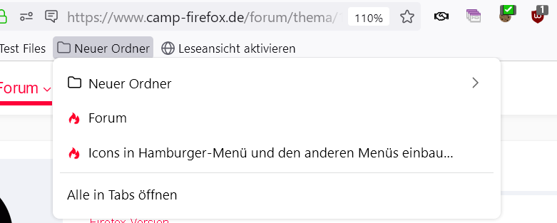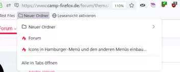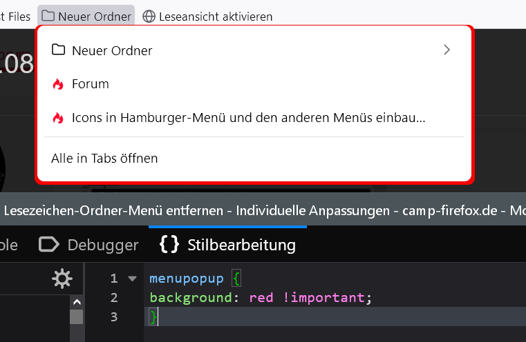 Rahmen um Lesezeichen-Ordner-Menü entfernen