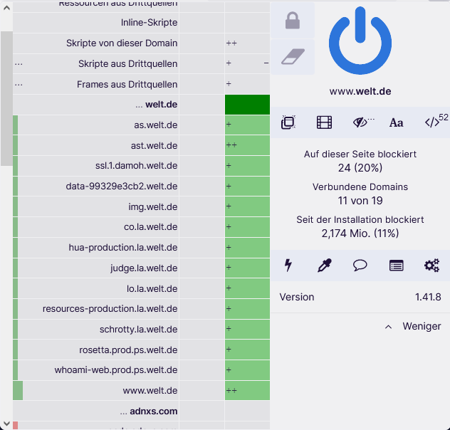 Videos auf WELT ziehen bei mir nur Kreise, sie starten erst, wenn ich uBlock Origin deaktivert habe.