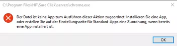 Ich habe hier langsam dieses "HP Shure Click" in Verdacht, das ja irgendwie dafür sorgen soll, dass Webinhalte sicher geöffnet werden.