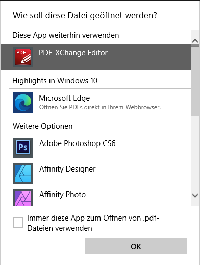 Wie gesagt: Standard App für PDF ist der PDF-XChange-Editor (ich hoffe ich hab das jetzt richtig geschrieben)