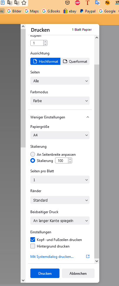3 Sekunden gegoogelt nach "vereinfacht drucken firefox" und schwupps kam das Ergebnis https://support.mozilla.org/de/kb/uebersic…te-vereinfachen