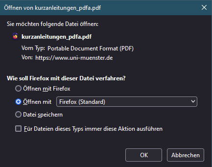 Auswählen was bei PDF geschehen soll
