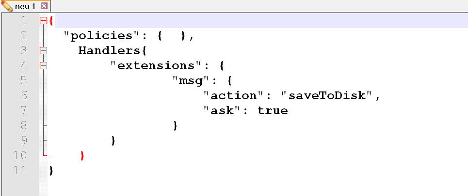 Ich hab es auch über Sörens verweis probiert. Bei mir hat es aber leider nicht mit der policies.json gefunzt. Muss man da noch was machen, außer den Unterordner und die Datei zu erstellen? Über die Änderung der handlers.json funktioniert es, ist aber nicht so schön wenn man das bei allen Pc's und Profilen machen müsste.