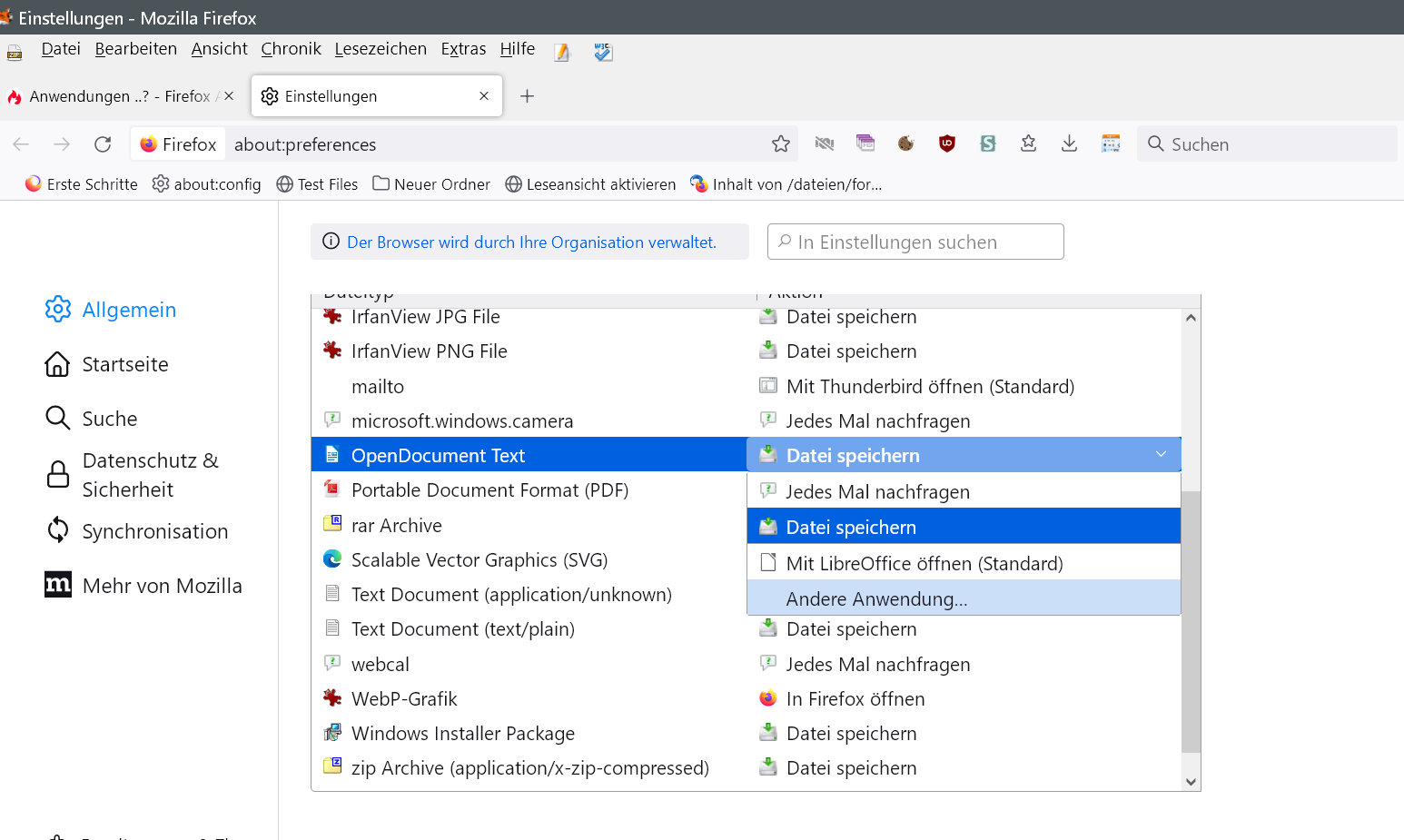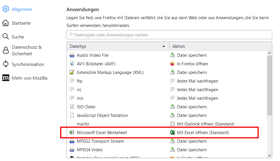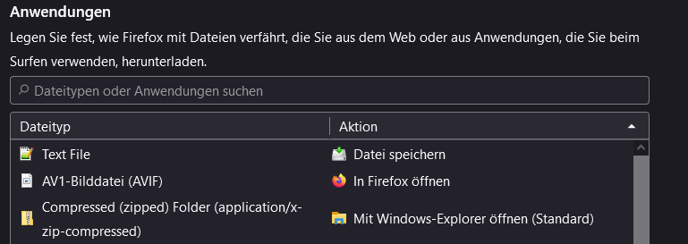 habe ich eine Tabelle für die Anwendungen mit Dateityp und Aktion.