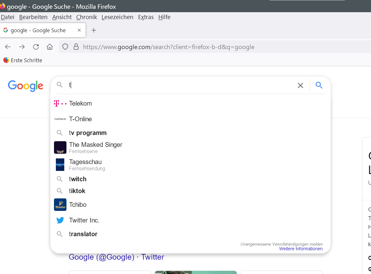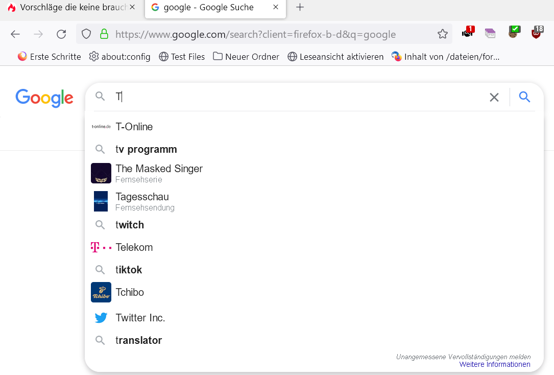 Habe "Suchvorschläge anzeigen" abgestellt. Es bleibt, wie angezeigt. Kommt es vom FF oder ist das eine Einstellung von Google?