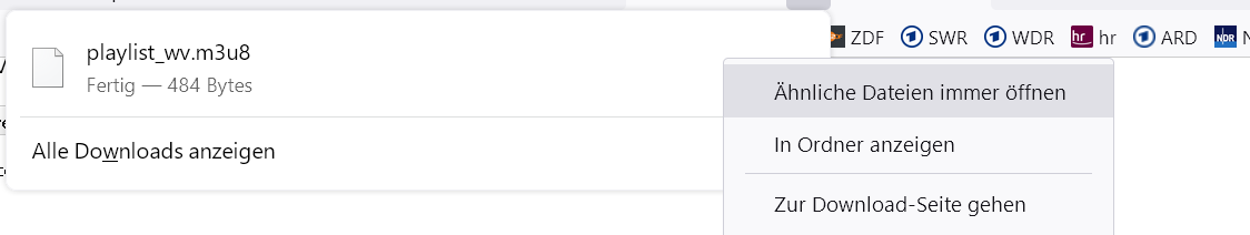 ein m3u8 Stream wird von Firefox nicht mehr erkannt und steht nur zum Download bereit. (Entsprechendes Fenster öffnet sich)