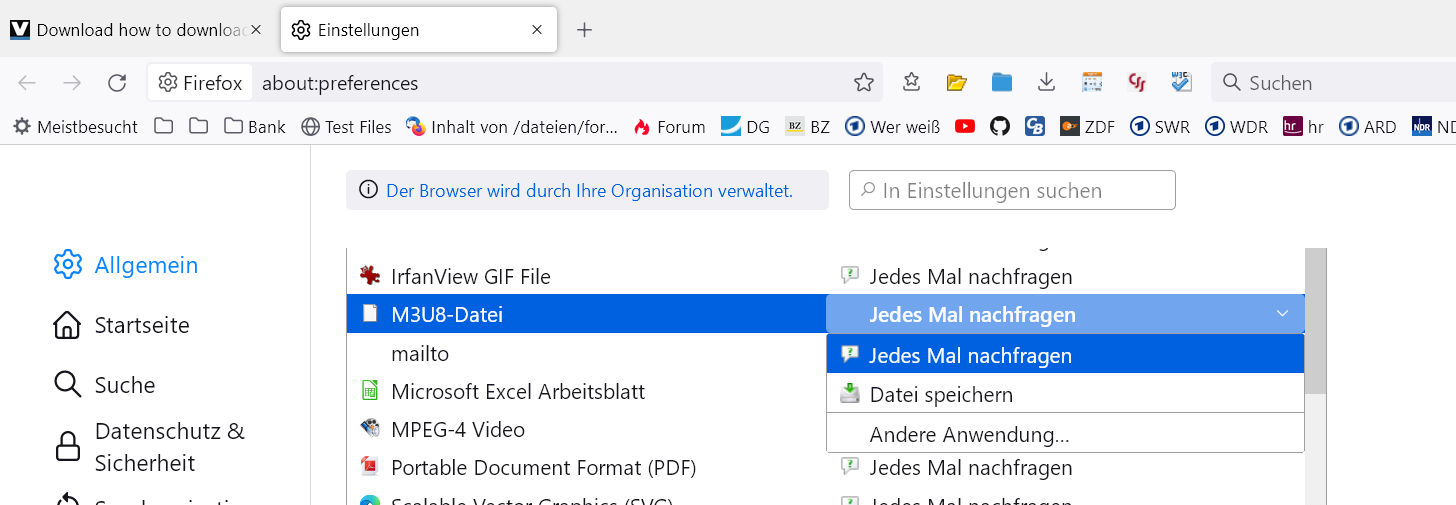 Unter "Anwendungen" finde ich bei Firefox u.a. nur m3u.