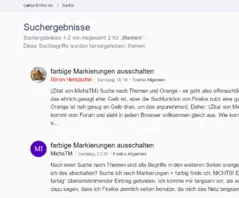 Nach einer Suche nach Themen sind alle Begriffe in den weiteren Seiten orange unterlegt - wozu soll das gut sein? Und wie kann ich das abschalten?