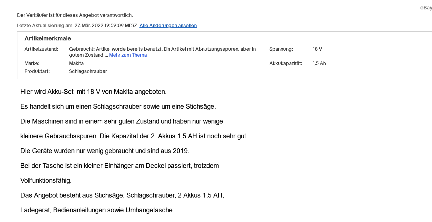 1. Bei Ebay werden die Beschreibungstexte oft nicht normal dargestellt, sondern in eine Art Spalte links am Bildrand verschoben.