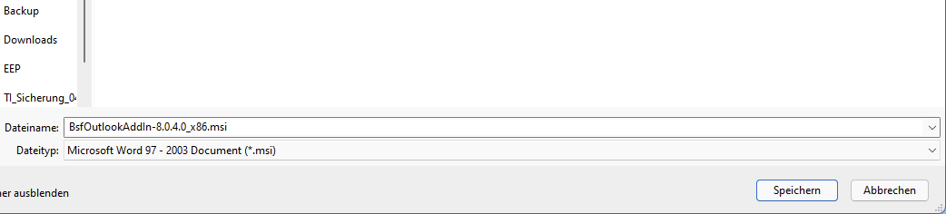nach dem Text "Sie können das Outlook Plugin hier herunterladen .." das MSI herunterlade, wird es als "...msi.doc" gespeichert. Passiert im Normalmodus und im Fehlerbehebungsmodus.