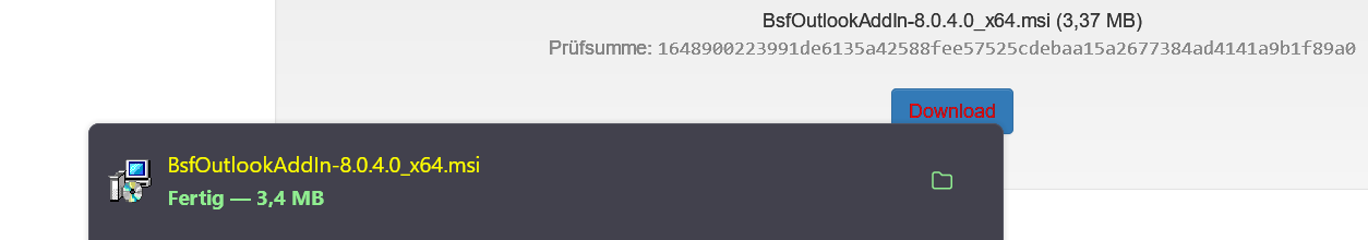 nach dem Text "Sie können das Outlook Plugin hier herunterladen .." das MSI herunterlade, wird es als "...msi.doc" gespeichert. Passiert im Normalmodus und im Fehlerbehebungsmodus.