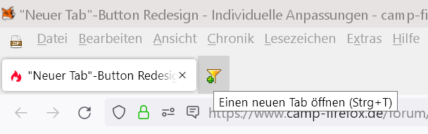 Ich hätte gerne anstelle dieses Symbols ein Plus-Zeichen als "Neuer Tab"-Button (oder auch irgendein anderes Bild, das ich finden/basteln kann).