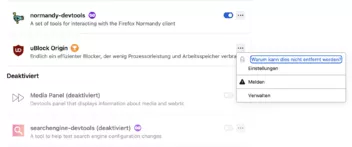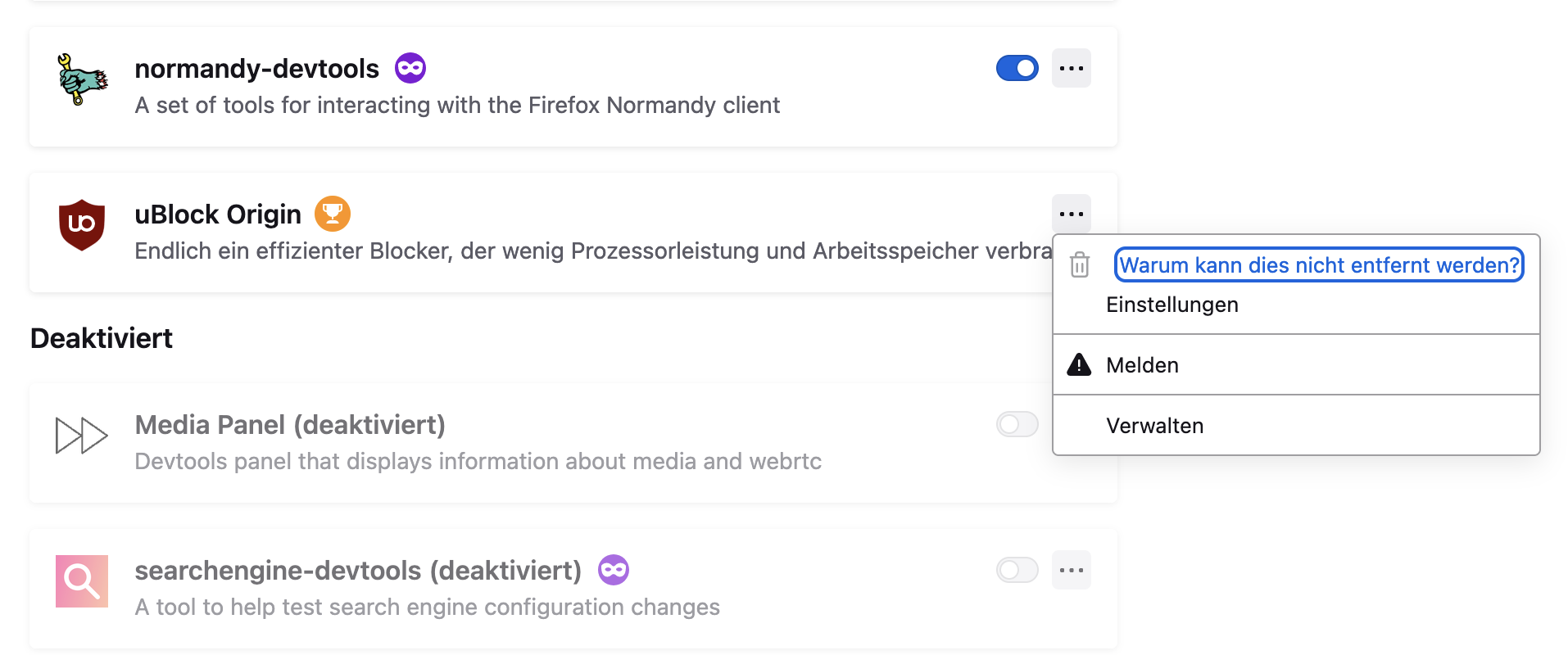 - Der Erweiterungs-Profilordner /home/<NUTZER>/.mozilla/.mozilla/firefox/xxxxxxxx.default-release/extensions/ existiert