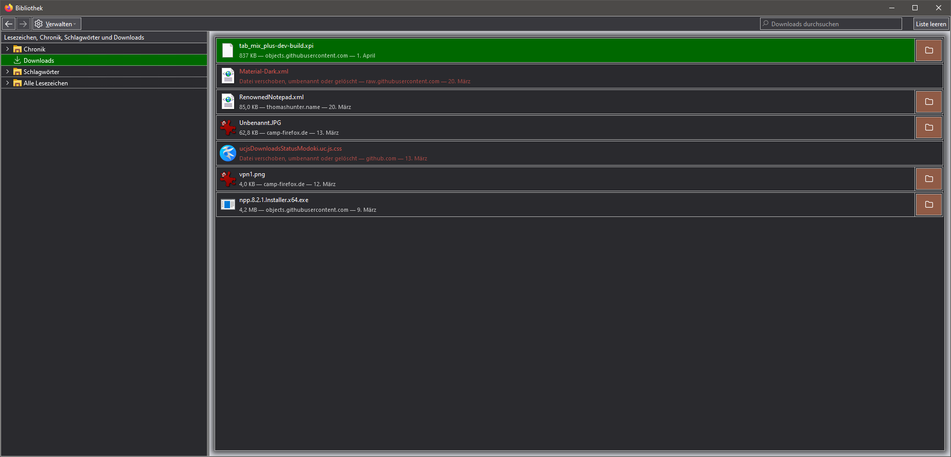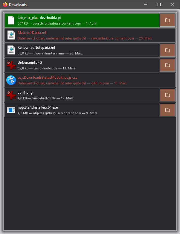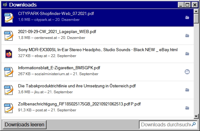 Vom Inhalt her also in etwa das was man auch sieht, wenn man in die Adressleiste about:downloads eingibt.