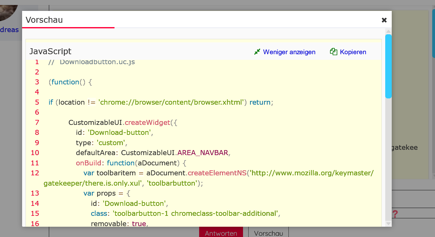 Sobald ich auf Vorschau oder Antworten klicke, wird der vormals gut lesbare Code zusammengestaucht und alle Leerzeilen entfernt.