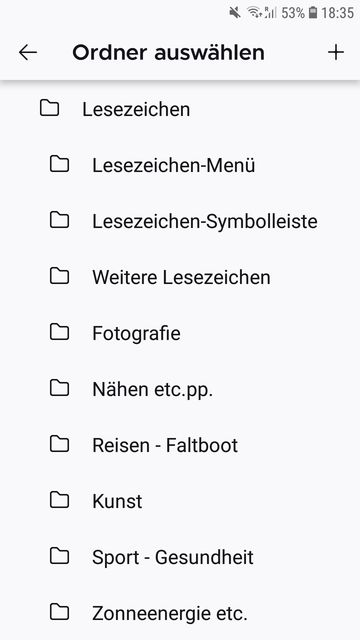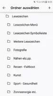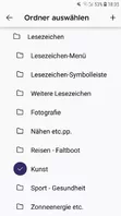 ich möchte meine Lesezeichen gern in Ordner nach Themen sortieren. Im Netz gibts eine einfache Erklärung, wie es geht, das funktioniert aber nicht, die Bookmarks erscheinen nicht im angewählten Ordner sondern bleiben im allgemeinen Lesezeichen-Ordner hängen. Das Anlegen der neuen Ordner war kein Problem. 🤔 Weiß jemand Rat?