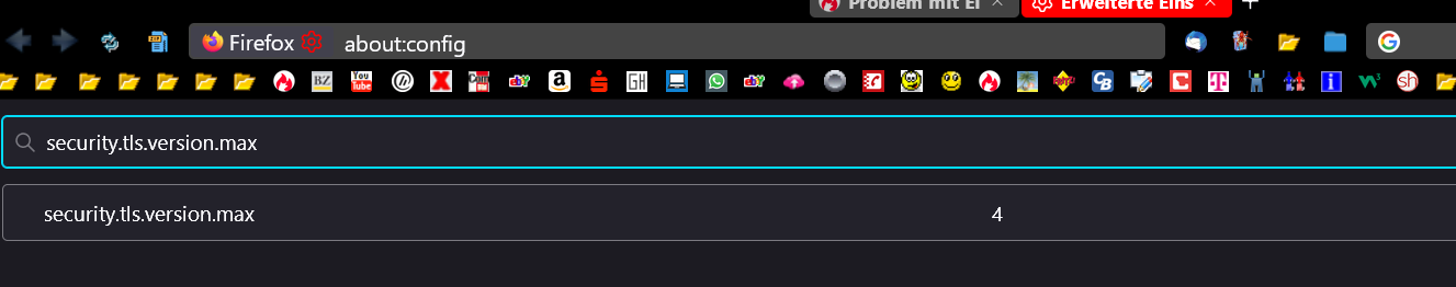 • "security.tls.version.max" die dort stehende "3" in eine "4" ändern soll.