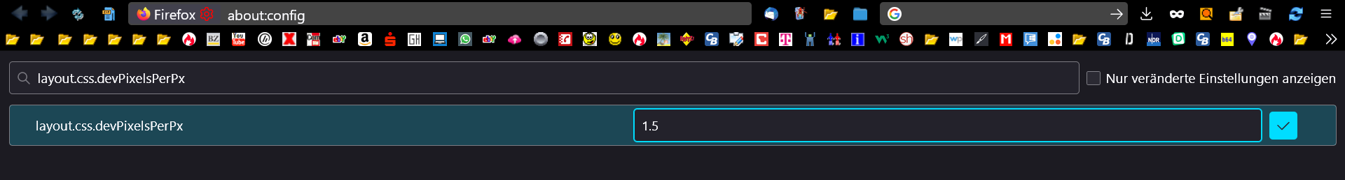 Aber bei 1.5 ändert sich die Titelleiste kein Stück hier, nur der Rest von Firefox wirkt wie unter der Lupe.