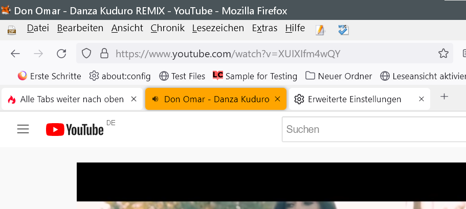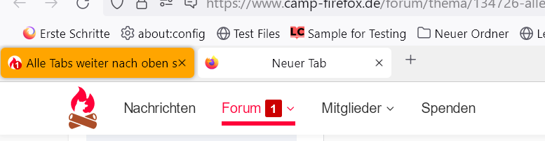 Jetzt hätte ich gern das orange TAB, sowie alle Tabs, weiter nach oben gesetzt und die Tableiste schmaler gestaltet.
