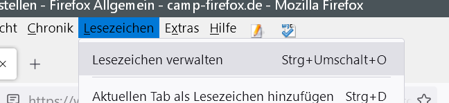 Auf den Button: Lesezeichen klicken..dann Lesezeichen verwalten