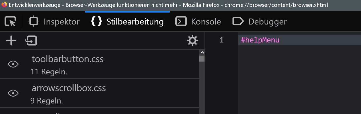 Seit kurzem (möglicherweise seit gestern) funktionieren bei mir die Browser-Werkzeuge nicht mehr (siehe Screenshot).