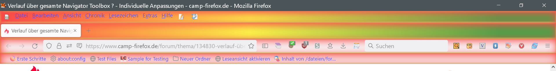 Wenn ich zB etwas wie das hier in die userChrome.css einfüge, passiert gar nichts :