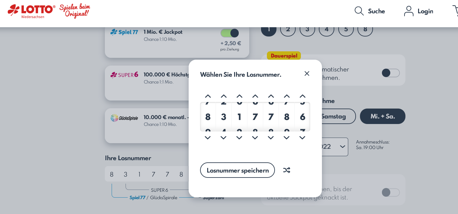 Bei "http://www.lotto-niedersachsen.de" kann man die 7 Ziffern der Zusatzlotterie Spiel 77