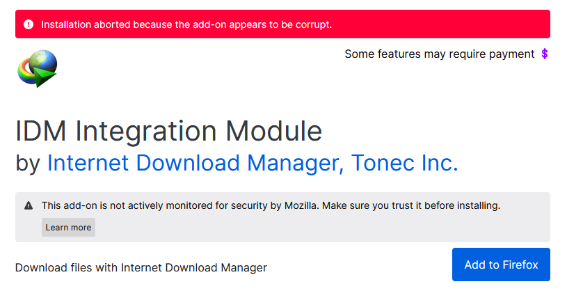 Habe IDM neu installiert aber der Download Manager wird von Firefox (101.0.1 64-bit) nicht mehr beachtet.Auch ein Versuch das Module über Mozilla-Addon-Seite zu integrieren schlägt fehl,selbst eine manuelle installation über den Addon-Manager
