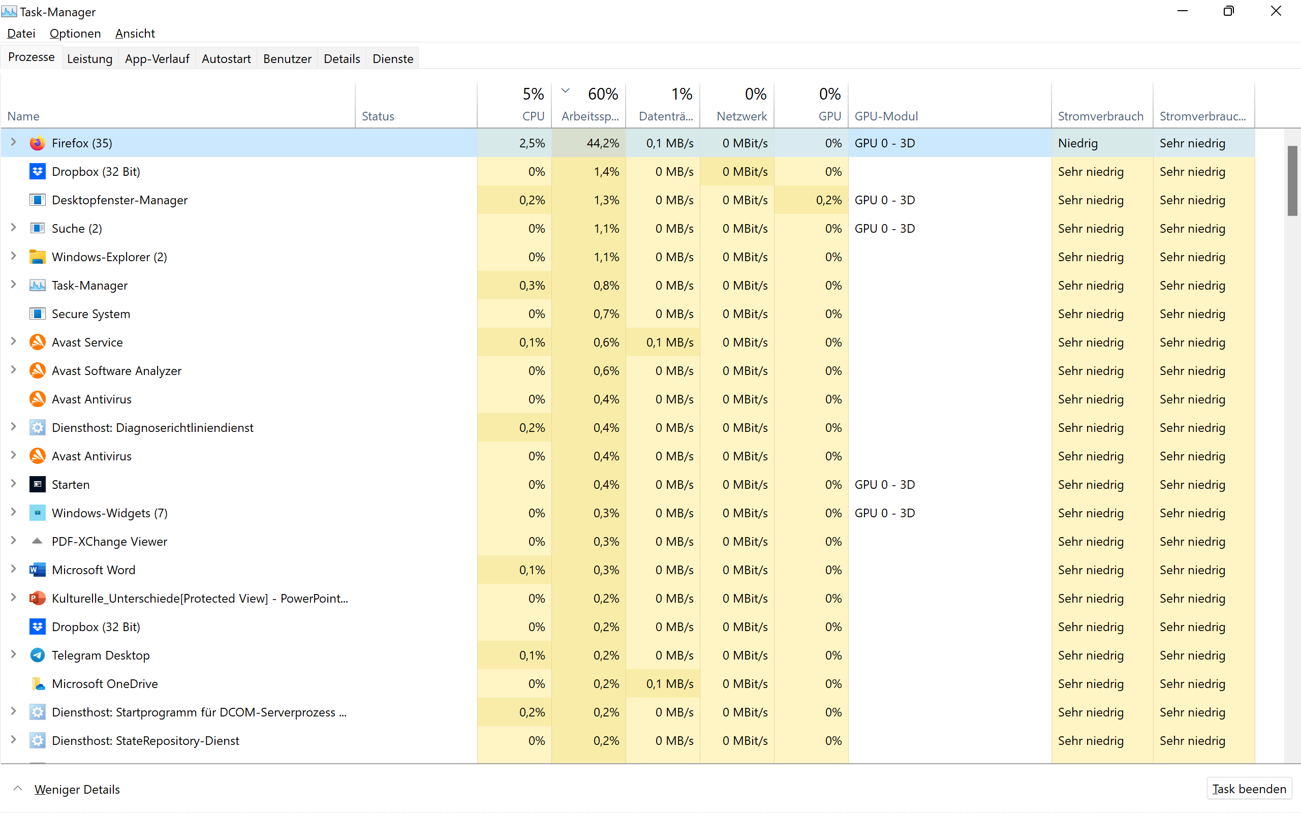 Danke für das Bild. Ich sehe, du nutzt AVAST als (externe) Sicherheitslösung, hierzu einen Rat, denn Windows 10 oder auch Windows 11 benötigt keinen zusätzlichen Schutz, da dieser (sinnlos) im Hintergrund scannt und dabei unnötig Ressourcen verbraucht. Deinstalliere den AVAST, der auch permanent deine Webseiten scannt und durchsucht, der von Windows 11 bereitgestellte Defender reicht vollkommen aus, ist sicher und beeinflusst dein System nicht. Die beste aller Lösungen sind immer die internen, auch bei Windows. AVAST ist keine gute Lösung, da sie Windows bremst.