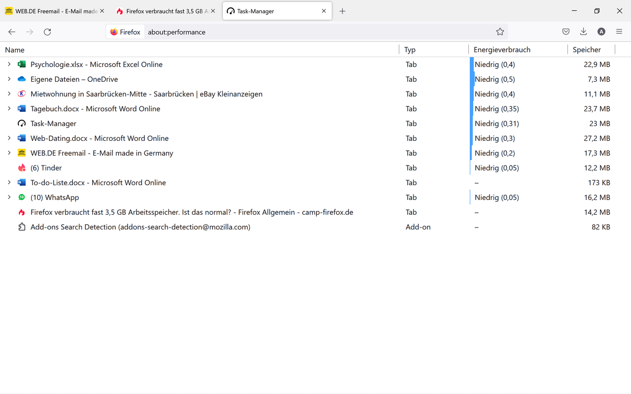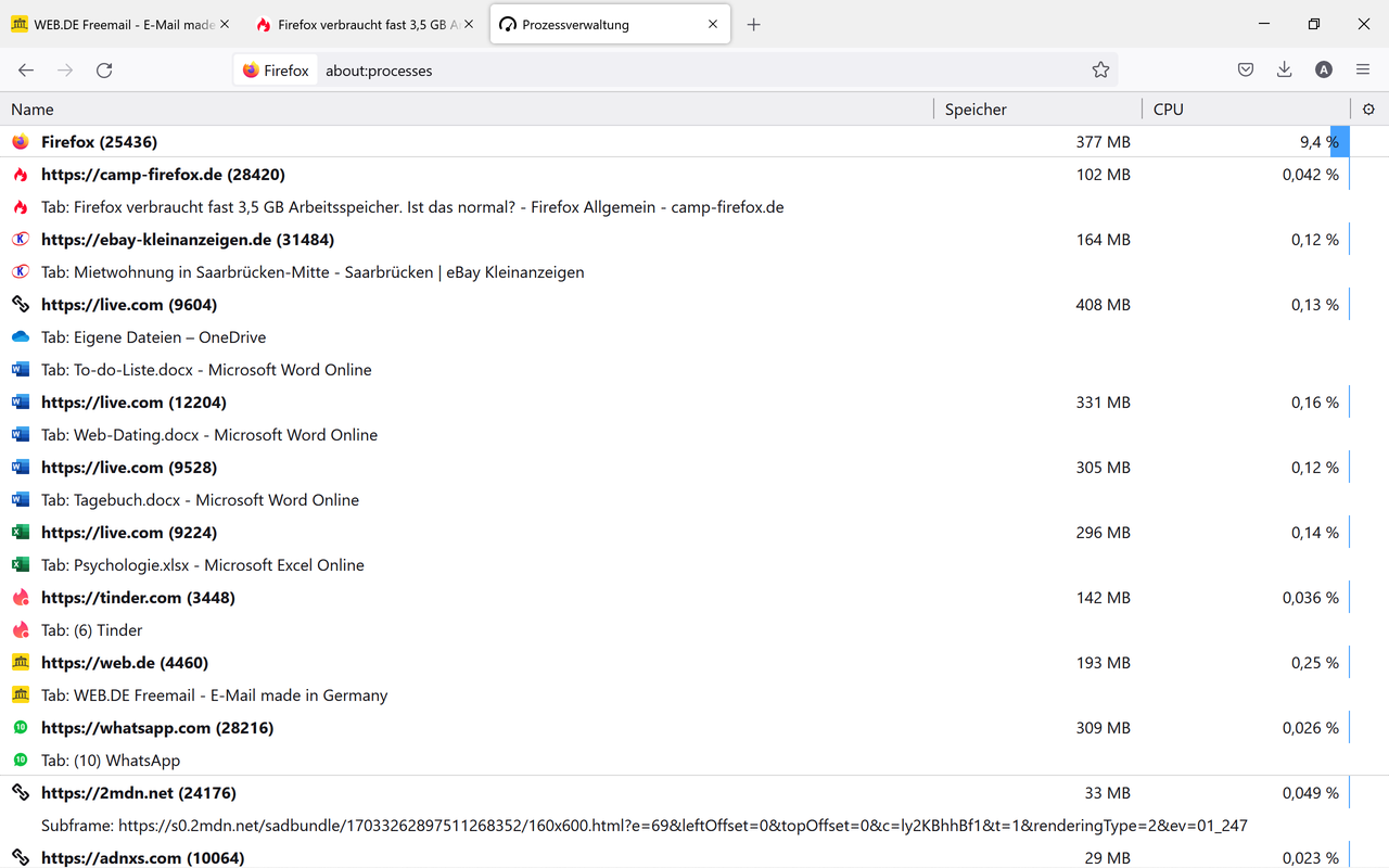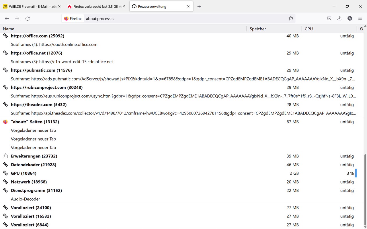 • Firefox verbraucht auf meinem Laptop fast 3,5 GB Arbeitsspeicher