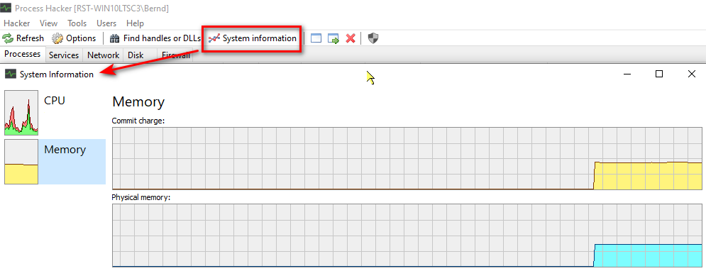 Dann ein Bild von "Memory" - von genau jenem Fenster "System Informationen", komplett. Und Bilder von der Liste der Prozesse, ganz wichtig.