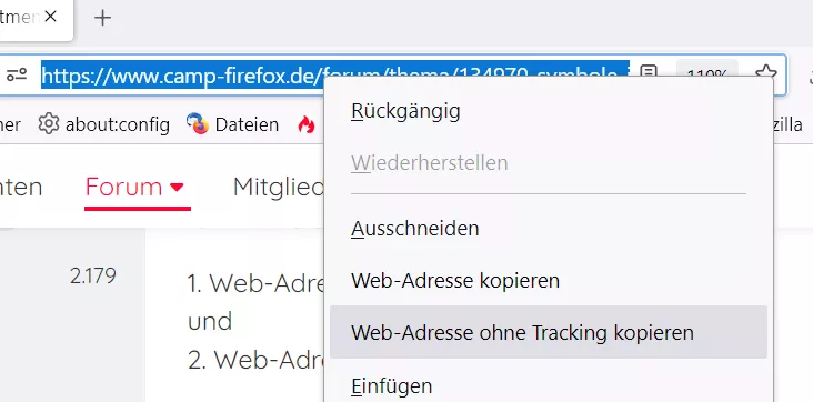 Es darf aber nur der Text bei Rechtsklick in die Urlbar angesprochen werden.