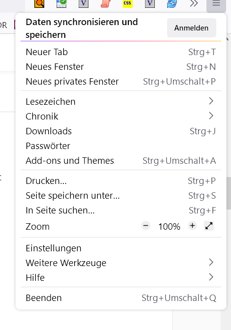 Hamburger Menü Zeilenabstand