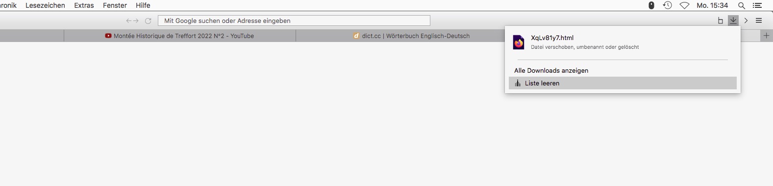 Was mir aber lieber wäre, ist dass der Download Button wieder verschwindet, sobald ich mir das Popup des Download Buttons ( erster Bildanhang ) angeschaut und dann geschlossen habe ( wie gewohnt mit esc., auf den button klicken, etc. ) , und nicht erst nachdem ich a) zur Downloadliste gegangen bin, und b) die Downloadliste geleert habe .