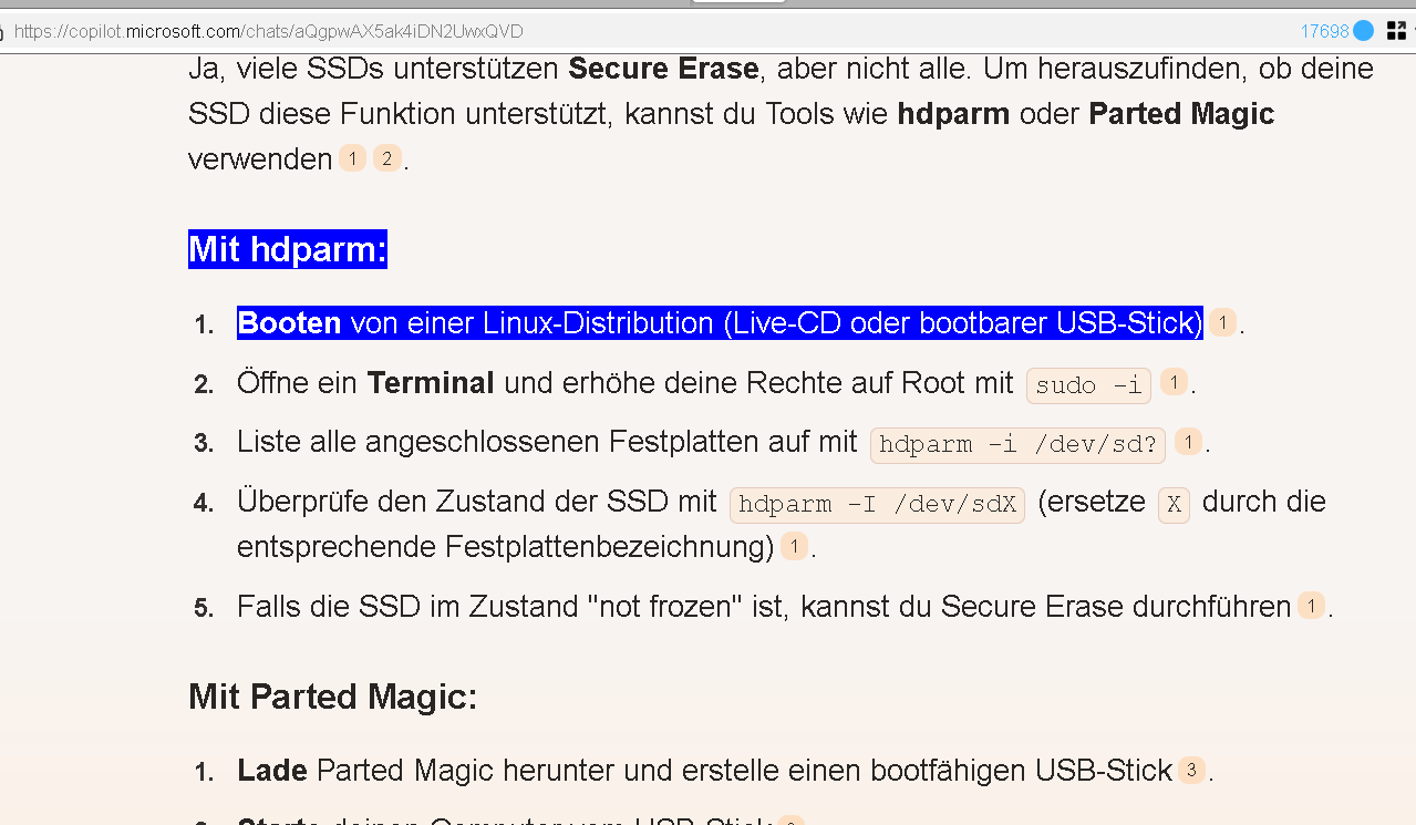 -> Markieren und Kopieren der Antwort im Copiloten: