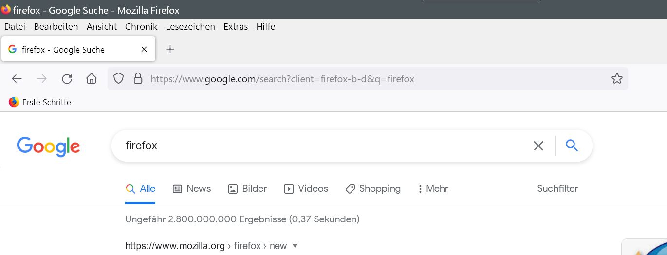Gebe ich eine Suche ein, erscheinen die Treffer in einem anderen design. Zudem werden oben die Wahlmöglichkeiten "Allgemein, maps, Bilder, .... " nicht mehr angezeigt. Zudem kann ich die Einstellungen, dass die Chronik nicht angelegt werden soll, nicht eingeben. Es erscheint nach Neustart immer wieder die Benutzer definierte Einstellung und eine Chronik wird weiterhin angelegt.