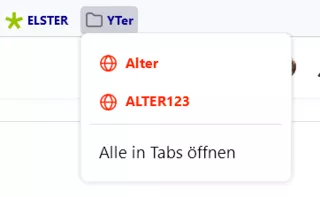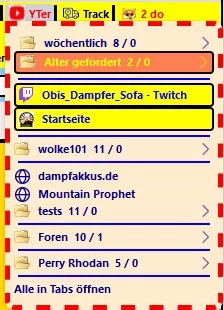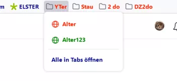 "YTer", "2 do" und "DZ2do" sind Ordner in der Lesezeichenleiste.