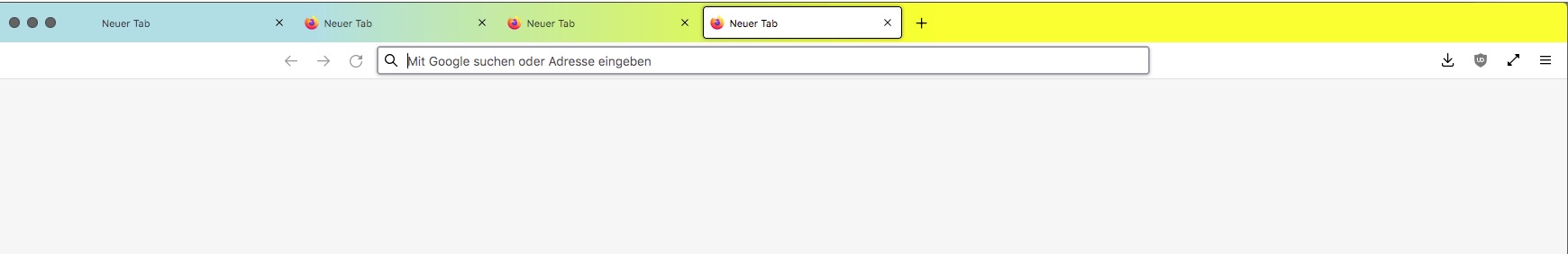 Im Screenshot unten liegt ein Verlauf über der Tableiste; mit Ausnahme des aktiven Tab haben alle Elemente diesen Hintergrund .