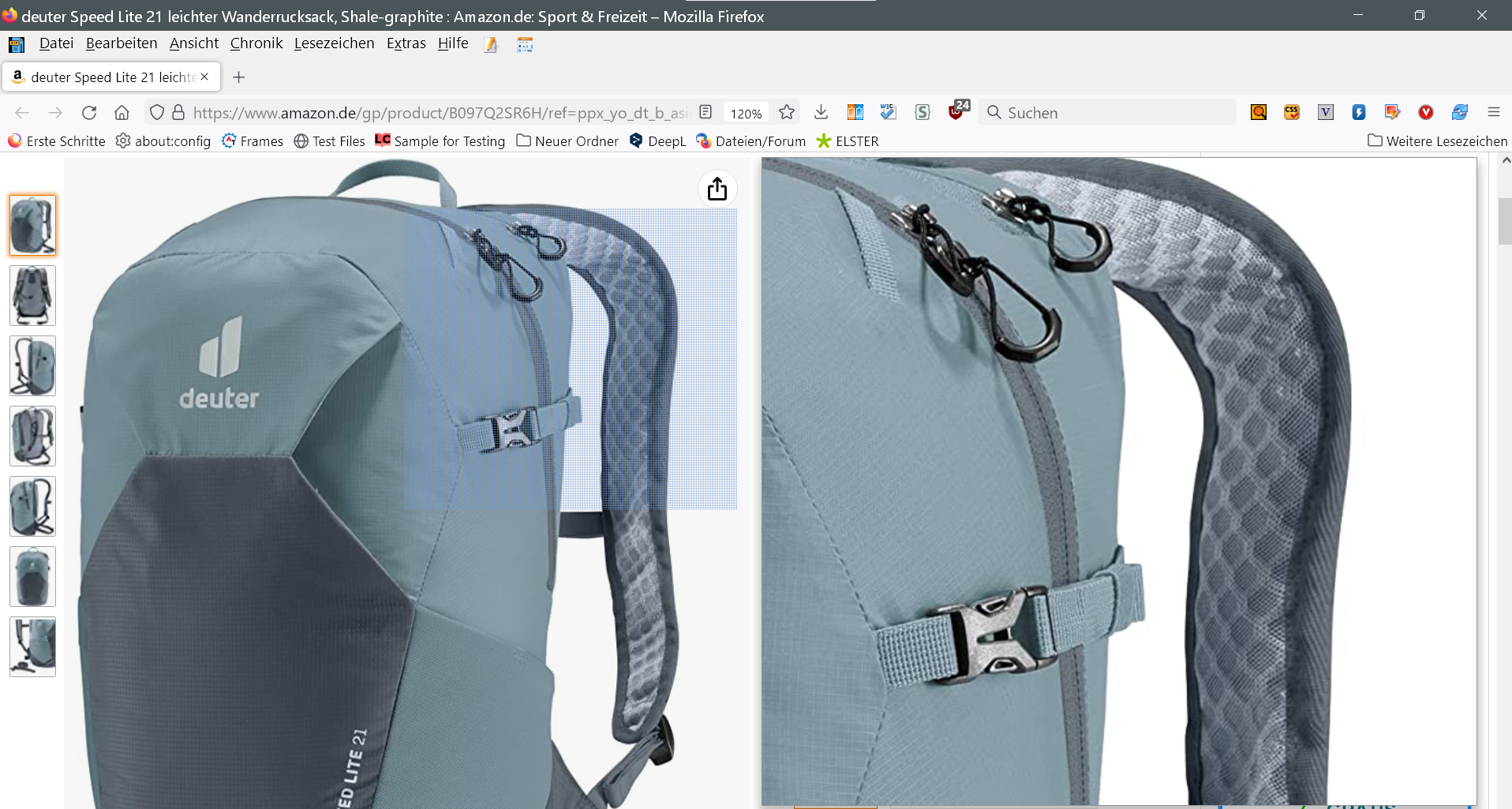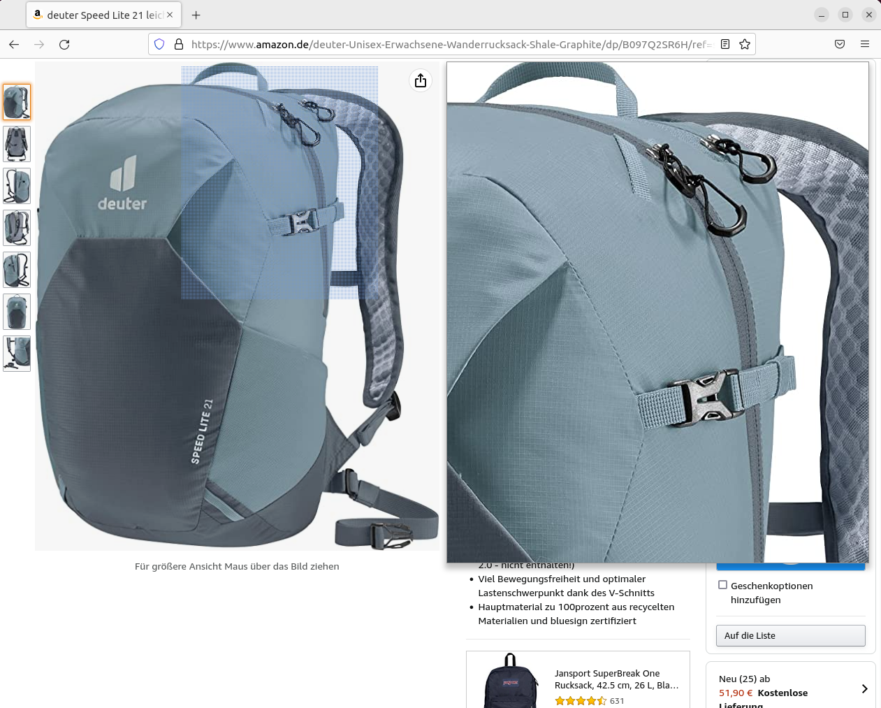 Was jetzt aber merkwürdig ist: Wenn ich die entsprechende Produktseite in Chrome oder Edge öffne, klappt der Hover-Zoom problemlos.